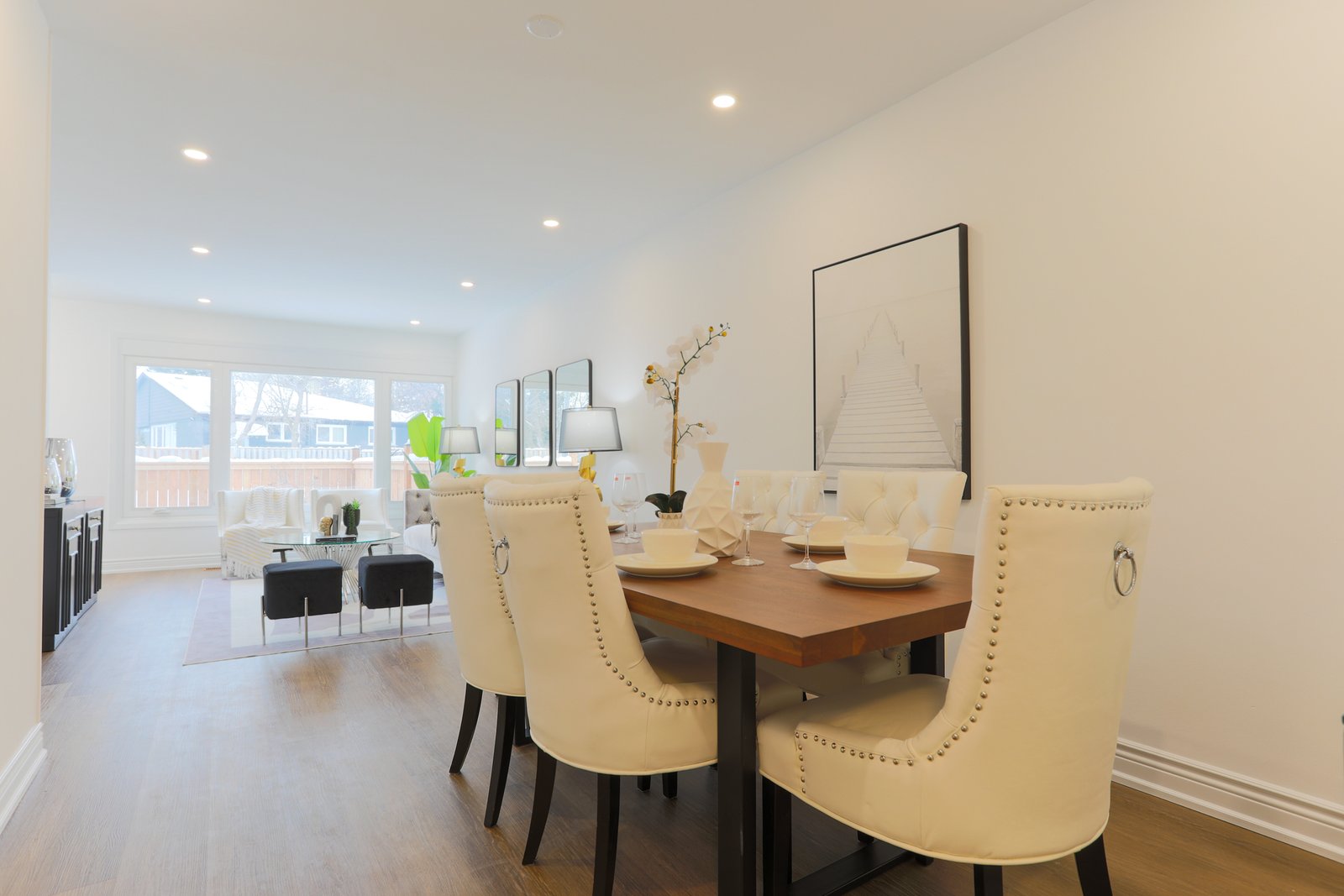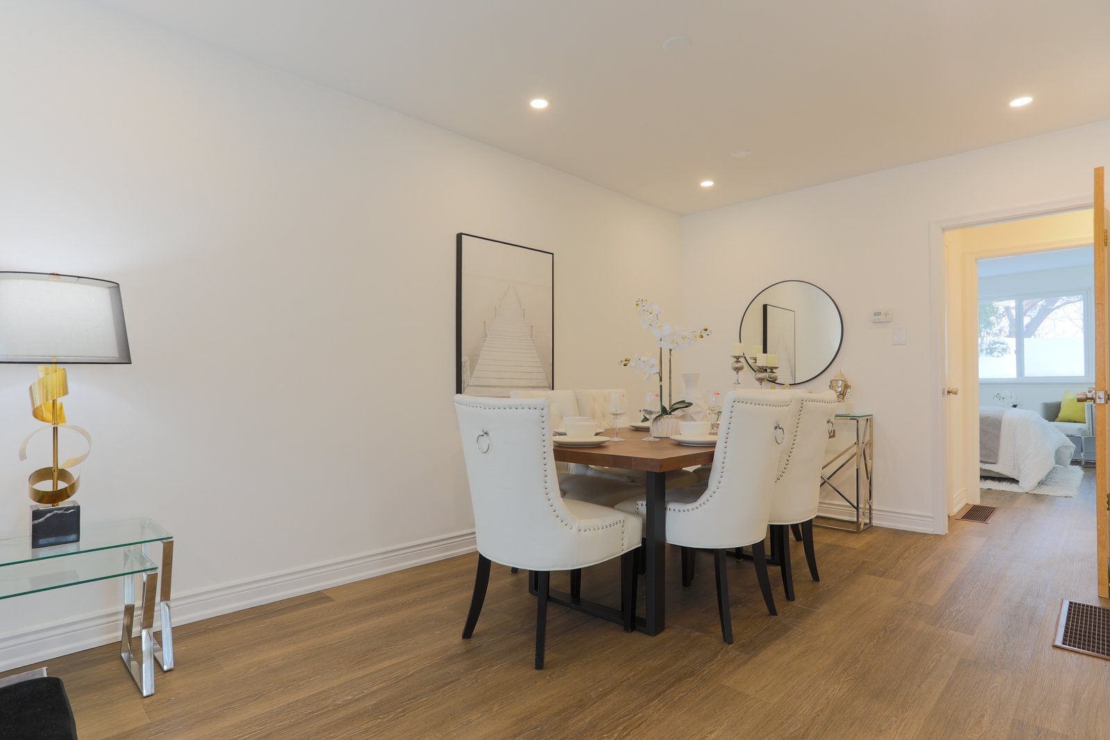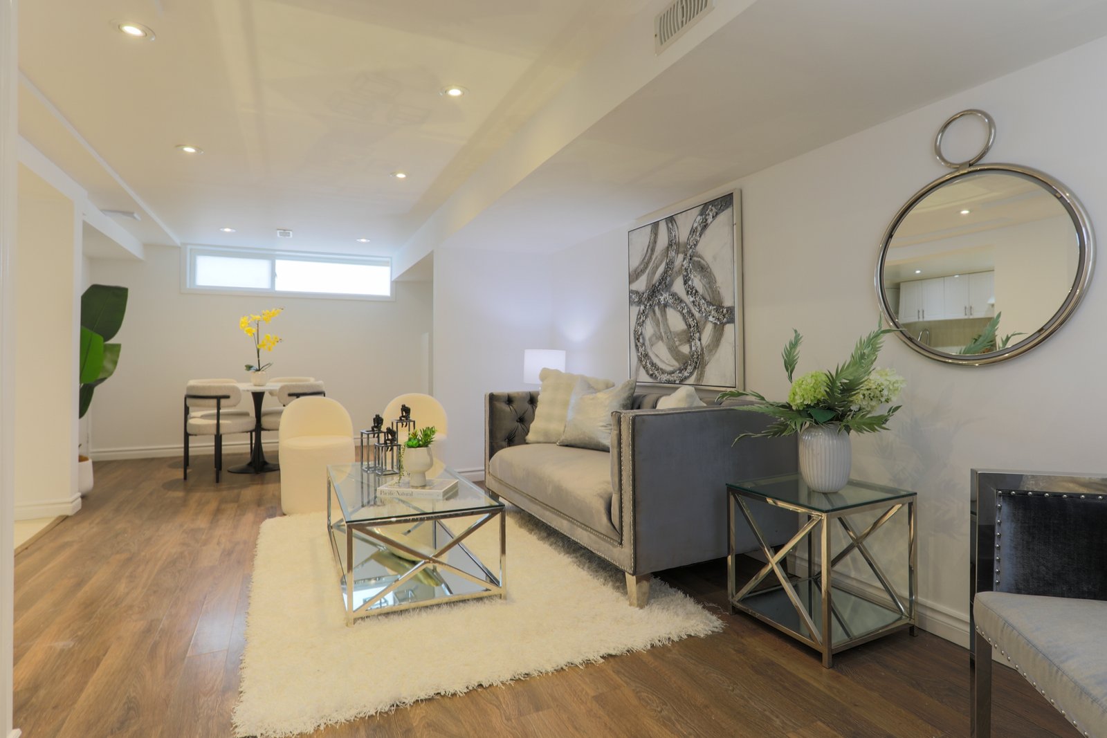 The open-concept living and dining area features a large window that floods the main level with natural light, complemented by brand-new pot lights throughout the entire home. The finished basement includes a self-contained in-law suite with its own kitchen, living room, bedroom, and bathroom—ideal for multi-generational living or potential rental income.